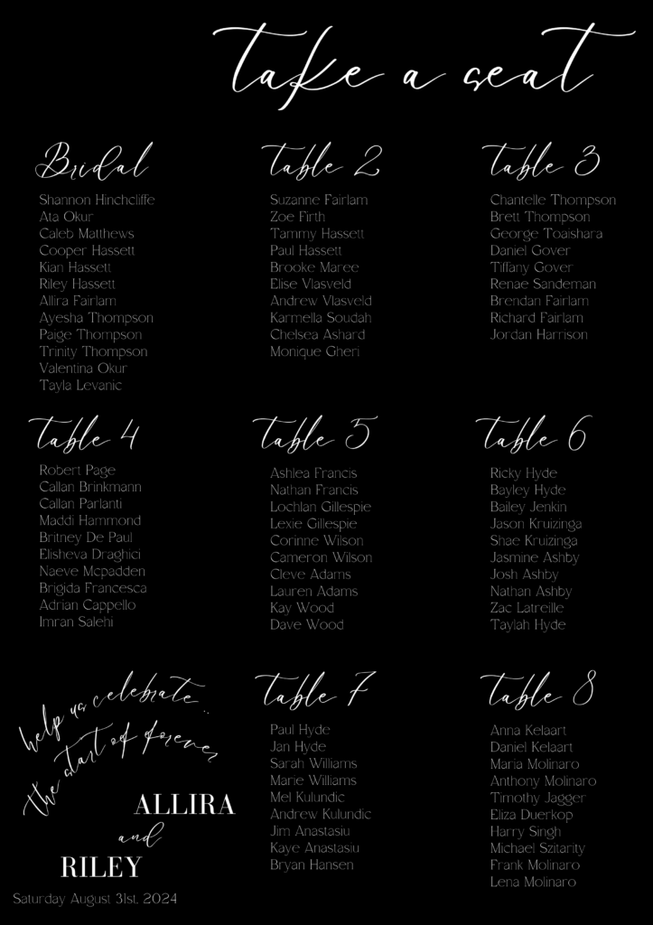 Allira & Riley came to me in mid July 2024 just a narrow 6 WEEKS before their big day! They had booked most things but were running out of time quickly and didn’t know what to do to be able to get the final details sorted. Both working full time and Allira having taken on additional training and responsibilities in a colleagues absence saying they were stressed is an understatement.