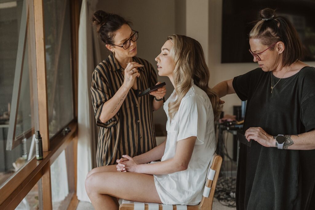 With anywhere between 50-70 weddings a year Ingrid is high in demand for her popular natural style makeup. “I love being apart of my brides memorable day, I love sharing the highs and lows and supporting them through it all, the vibes, the music, the champagne and all the happiness is just so incredible and magical. I believe my style of makeup that enhances the natural beauty of the bridal party. Also my experience in the industry which allows me to calm the room as honestly I have seen and experienced it all!“